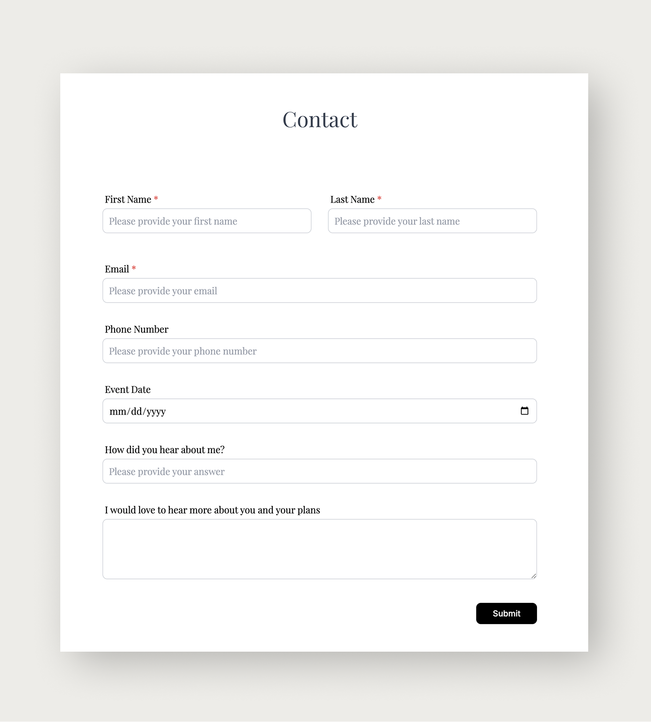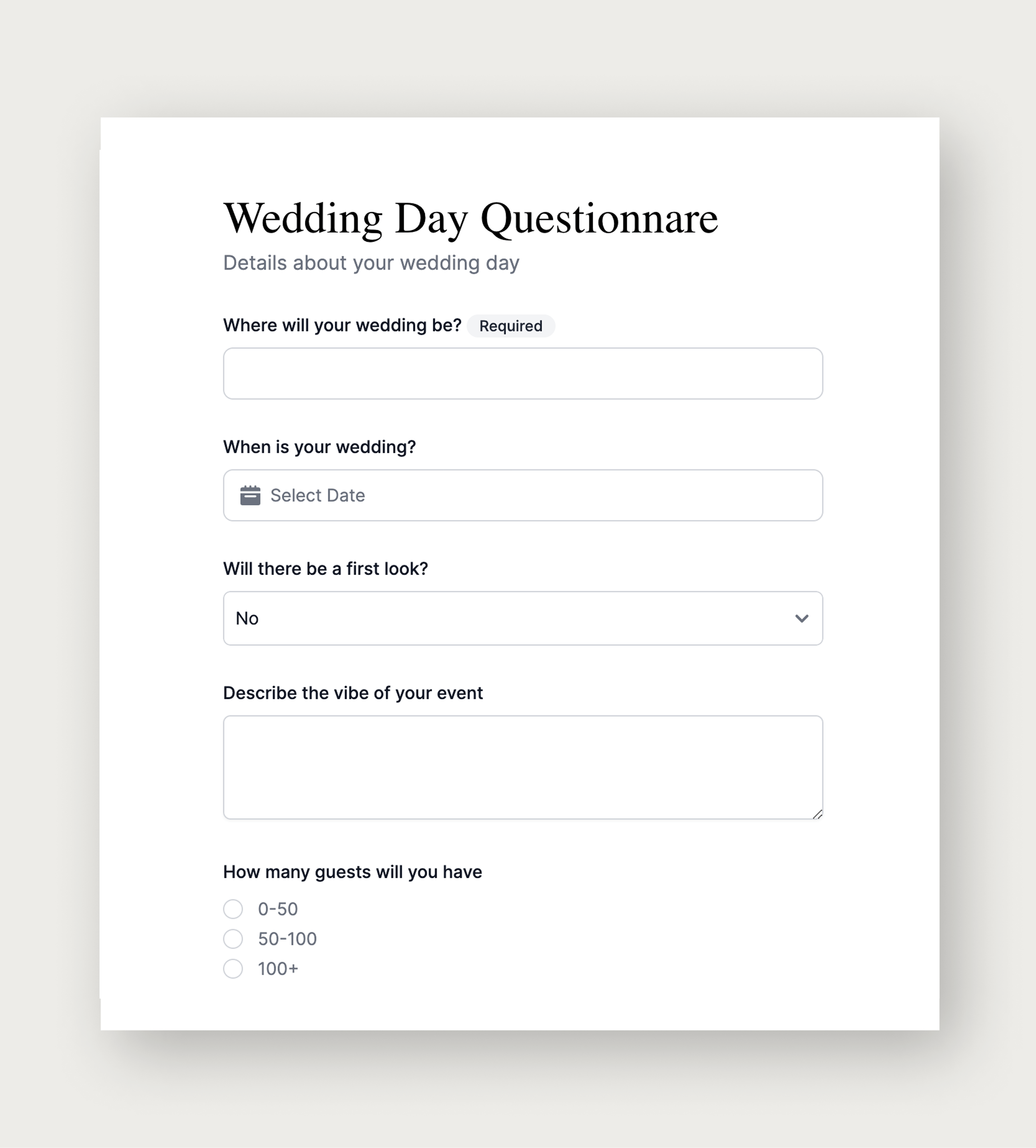 Use our form builder to create custom questionnaires for all your types of shoots. Never miss a detail again.