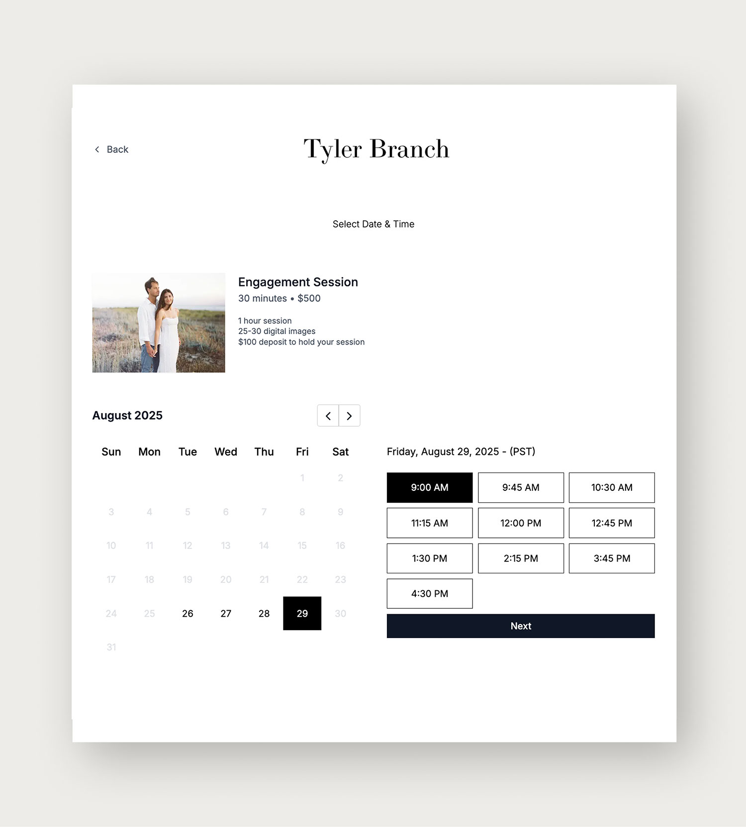 A beautiful, intuitive scheduler that makes booking simple for clients and effortless for you.